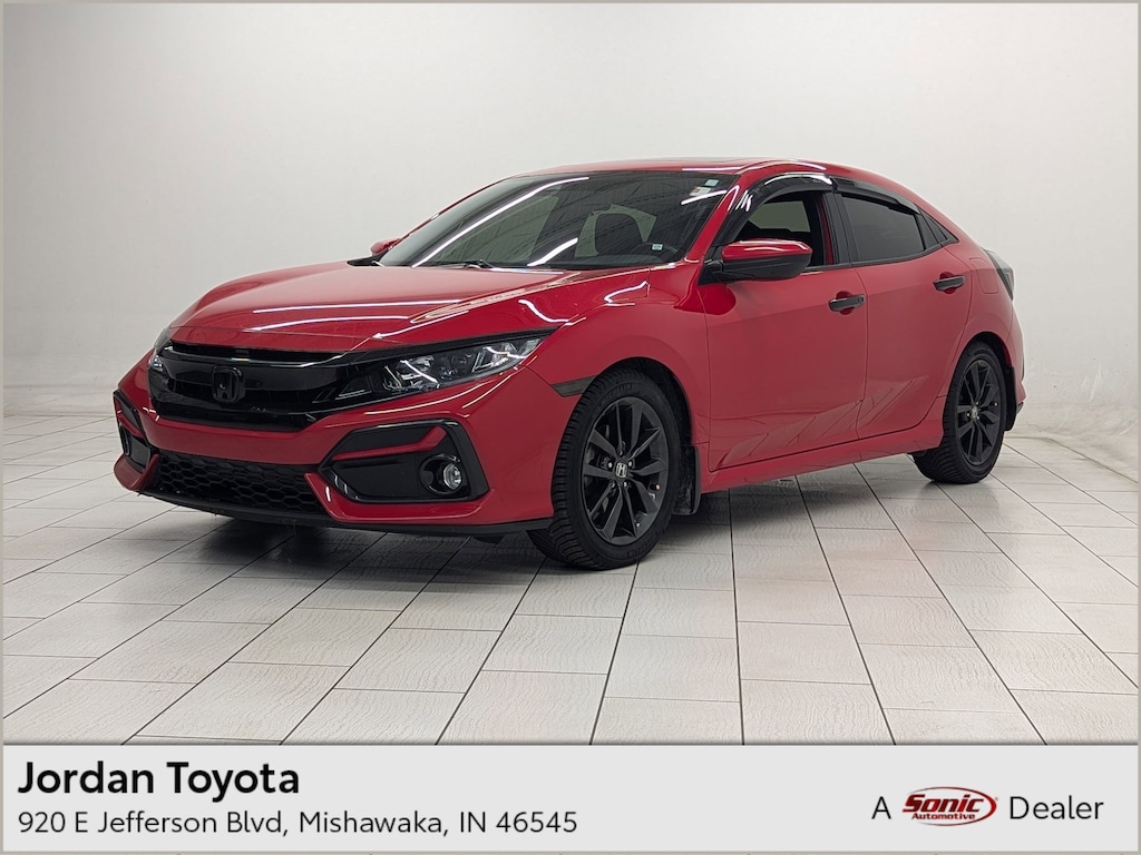 2020 Honda Civic Hatchback EX, Turbocharged, Sun/Moonroof, Daytime Running Lights, Bluetooth Connection, Remote Engine Start, Immobilizer, Lane Keeping Assist, Lane Departure Warning, Front Collision Mitigation, Back-Up Camera, Red exterior, and Black interior.