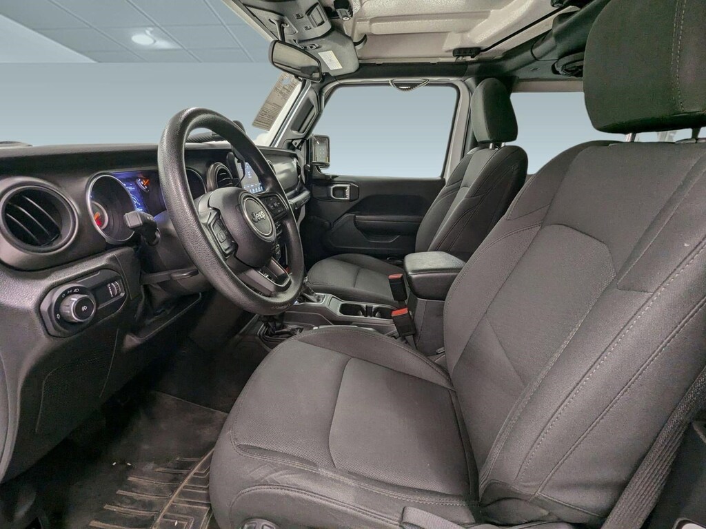 2023 Jeep Wrangler Sport, Four Wheel Drive, Brake Assist, Tow Hooks, Rollover Protection Bars, Convertible Soft Top, Bluetooth Connection, Immobilizer, Traction Control, Stability Control, Back-Up Camera, Bright White Clearcoat exterior, and Black interior.