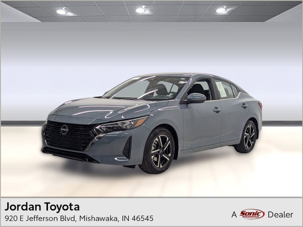2025 Nissan Sentra SV, Front Wheel Drive, Brake Assist, Automatic Highbeams, Bluetooth Connection, Keyless Start, Immobilizer, Rear Parking Aid, Blind Spot Monitor, Cross-Traffic Alert, Rear Collision Mitigation, Lane Departure Warning, Front Collision Mitigation, Driver Monitoring, Atlantic Gray Metallic exterior, and Charcoal interior.