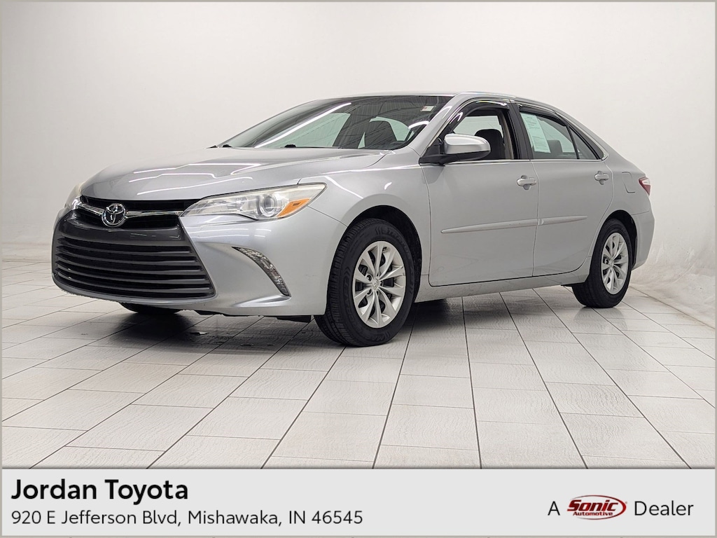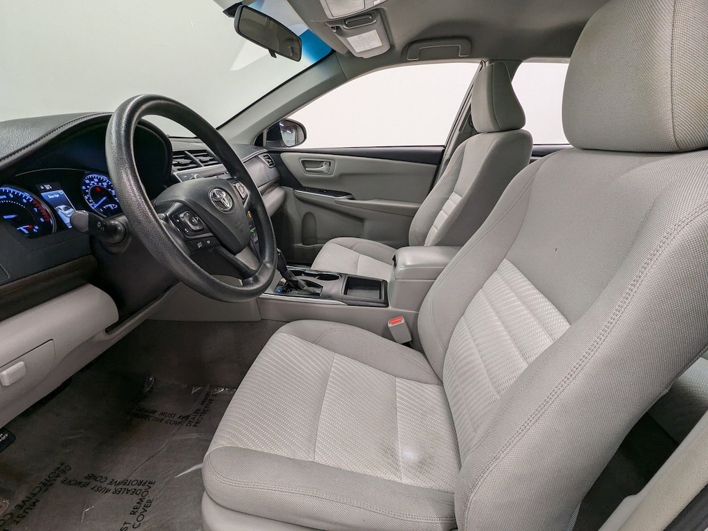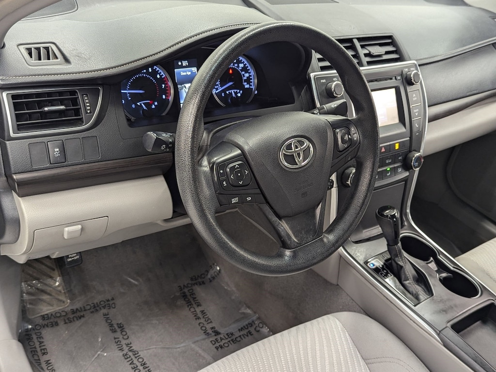 2017 Toyota Camry LE, Front Wheel Drive, Brake Assist, Daytime Running Lights, Bluetooth Connection, Woodgrain Interior Trim, Immobilizer, Traction Control, Stability Control, Back-Up Camera, Silver exterior, and Gray interior.
