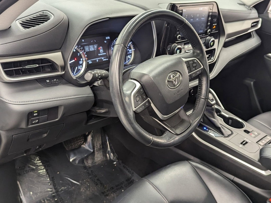2022 Toyota Highlander XLE, Front Wheel Drive, Sun/Moonroof, Heated Mirrors, LED Headlights, Bluetooth Connection, Heated Front Seat(s), Premium Synthetic Seats, Immobilizer, Front Collision Mitigation, Driver Monitoring, Evasion Assist, Blind Spot Monitor, Cross-Traffic Alert, Back-Up Camera, Silver exterior, and Black interior.
