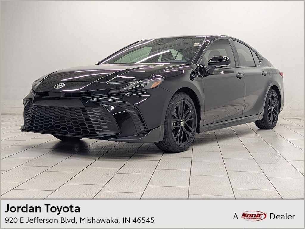 2025 Toyota Camry SE, Front Wheel Drive, LED Headlights, Bluetooth Connection, Premium Synthetic Seats, Immobilizer, Blind Spot Monitor, Cross-Traffic Alert, Lane Departure Warning, Lane Keeping Assist, Back-Up Camera, Black exterior, and Black interior.