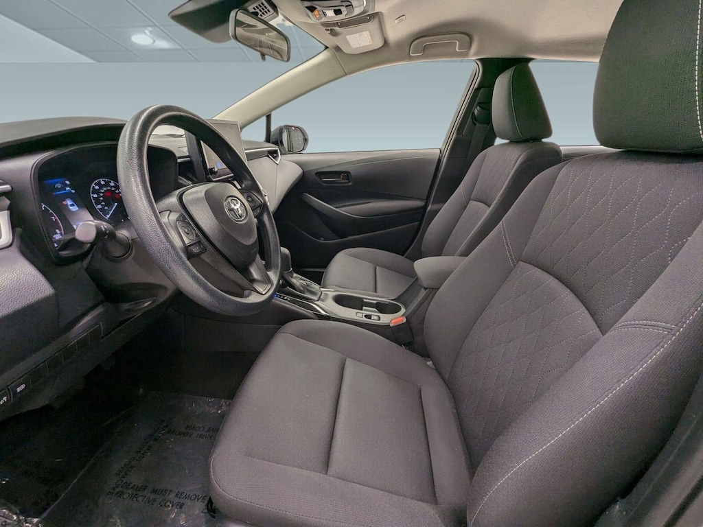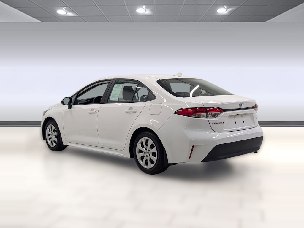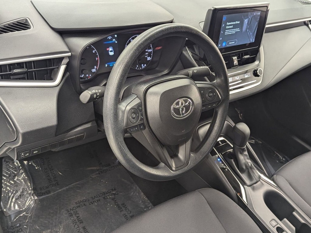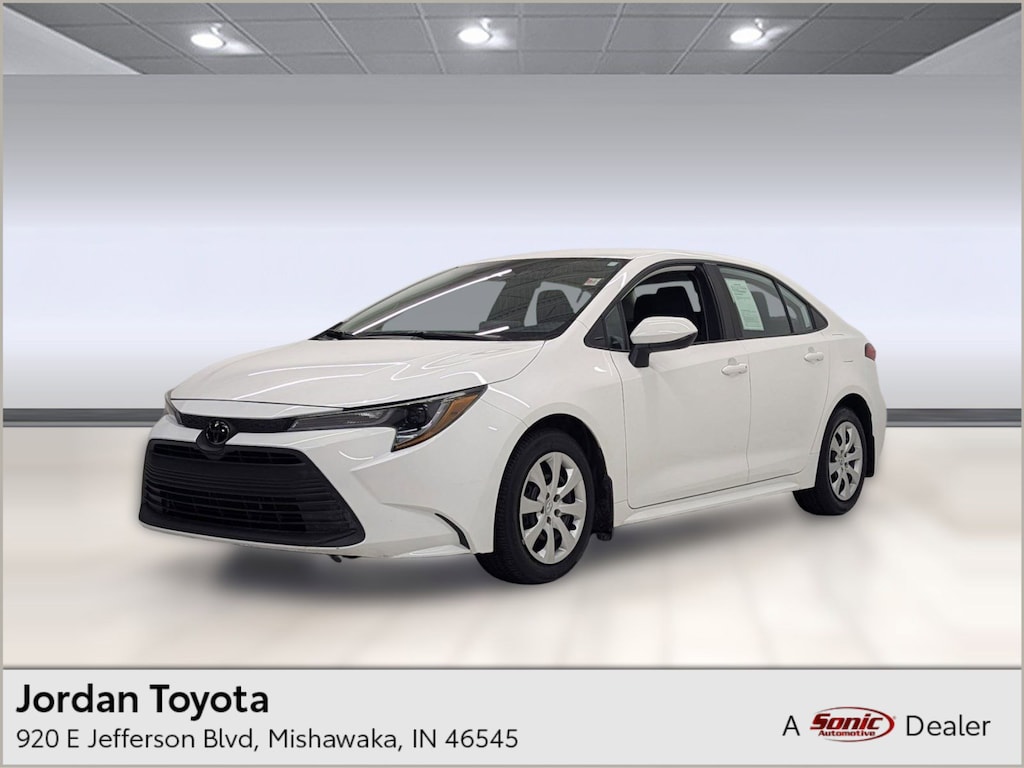 2025 Toyota Corolla LE, Front Wheel Drive, LED Headlights, Immobilizer, Cross-Traffic Alert, Lane Departure Warning, Lane Keeping Assist, Lane Departure Warning, Front Collision Mitigation, Driver Monitoring, Evasion Assist, Back-Up Camera, White exterior, and Gray interior.