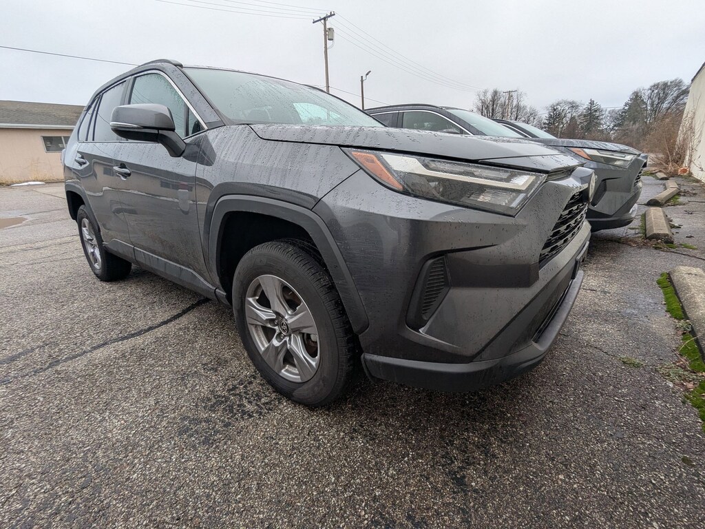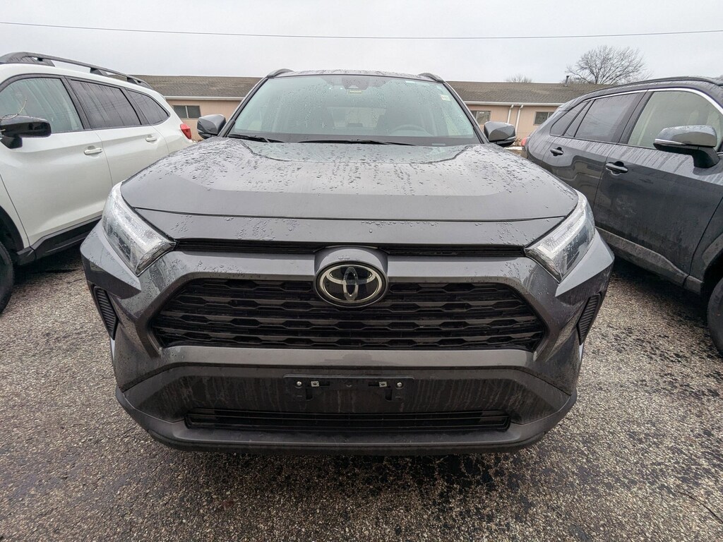 2025 Toyota RAV4 XLE, All Wheel Drive, Brake Assist, LED Headlights, Bluetooth Connection, Immobilizer, Lane Keeping Assist, Lane Departure Warning, Front Collision Mitigation, Evasion Assist, Blind Spot Monitor, Cross-Traffic Alert, Back-Up Camera, Gray exterior, and Black interior.