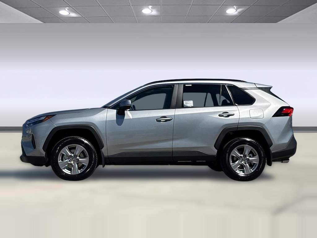 2025 Toyota RAV4 XLE, Front Wheel Drive, Automatic Headlights, Bluetooth Connection, Immobilizer, Lane Departure Warning, Lane Keeping Assist, Front Collision Mitigation, Evasion Assist, Blind Spot Monitor, Cross-Traffic Alert, Back-Up Camera, Silver exterior, and Black interior.